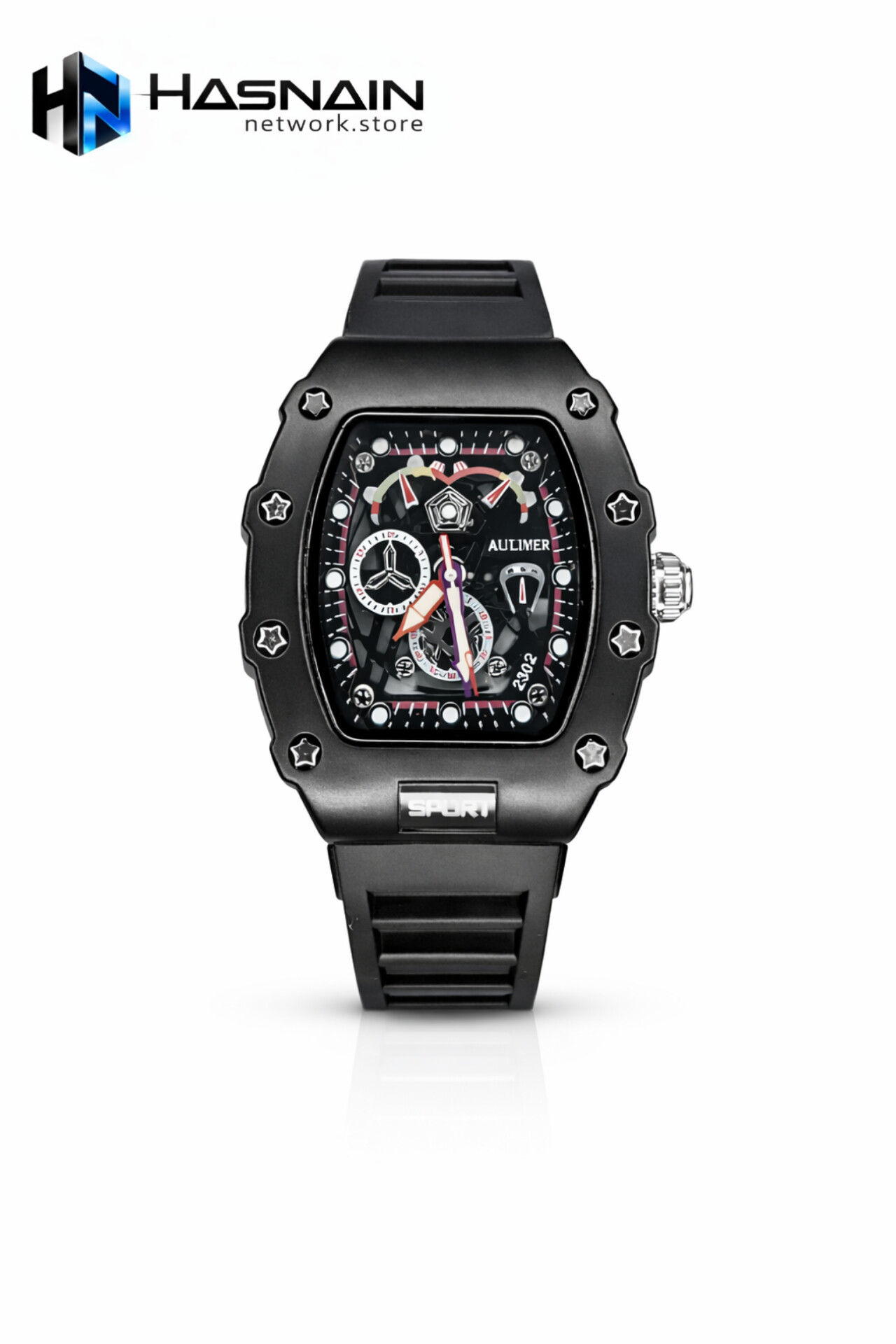 The Aulimer sports watch features a tough case with decorative screws and a wide dial designed for an energetic and adventurous look. Perfect for daily wear, sports activities, or casual dressing, this watch combines toughness with fashionable styling.
