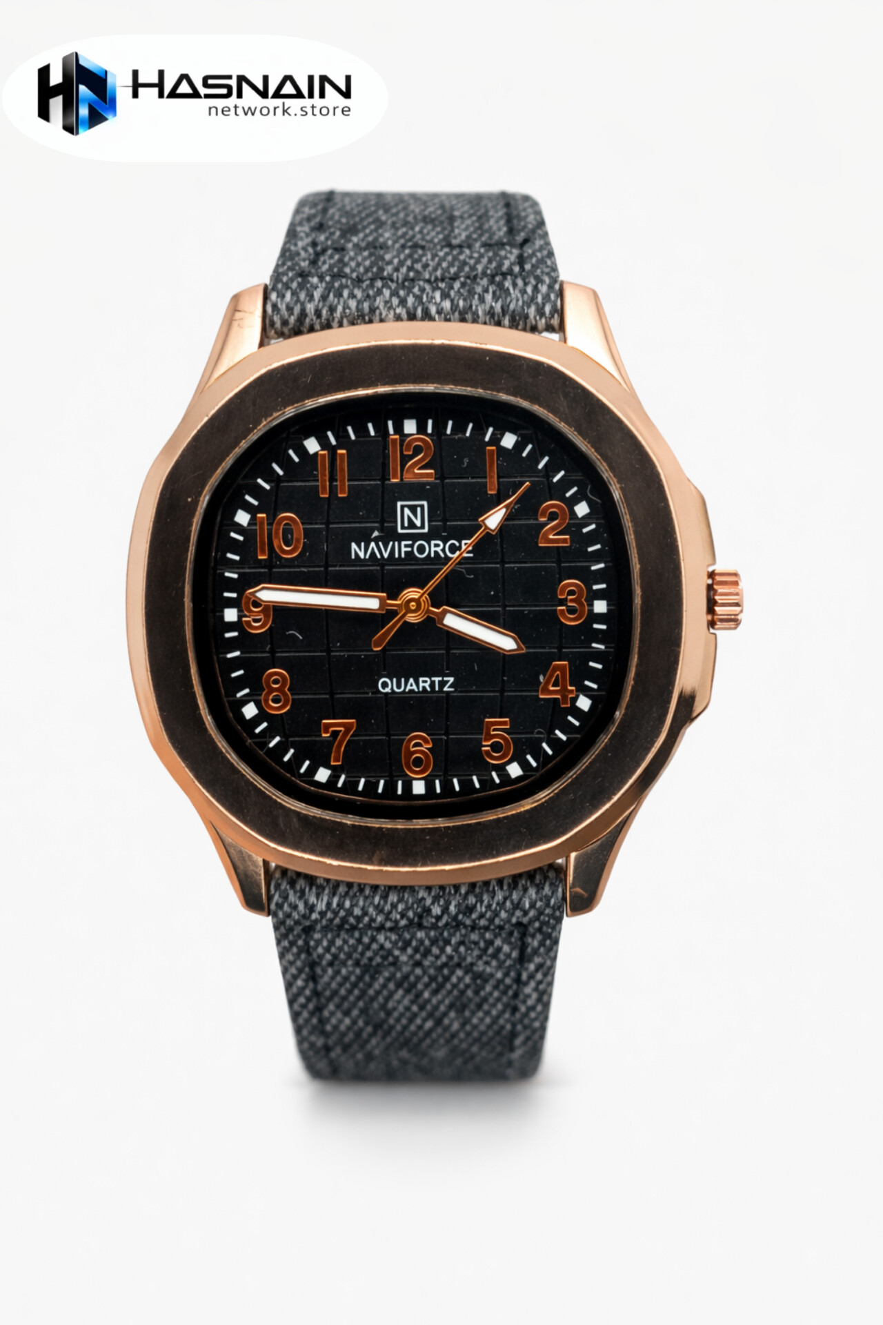 A trendy Naviforce men’s wristwatch featuring a unique square dial design. Black patterned dial with bold numeric markers gives strong visibility and modern appeal. Comes with a comfortable fabric strap suitable for long wear. Powered by quartz movement for reliable performance. Great for students and casual dressing.